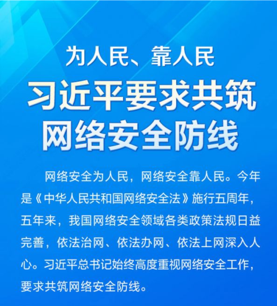 没有网络安全就没有国家安全。今年是《中华人民共和国网络安全法》施行五周年。一直以来,习近平总书记高度重视网络安全和信息化工作,敏锐把握信息时代“时”与“势”,多次在不同场合就网络安全发表一系列重要论述,为维护国家网络安全,筑牢国家网络安全屏障奠定基石。[详细]